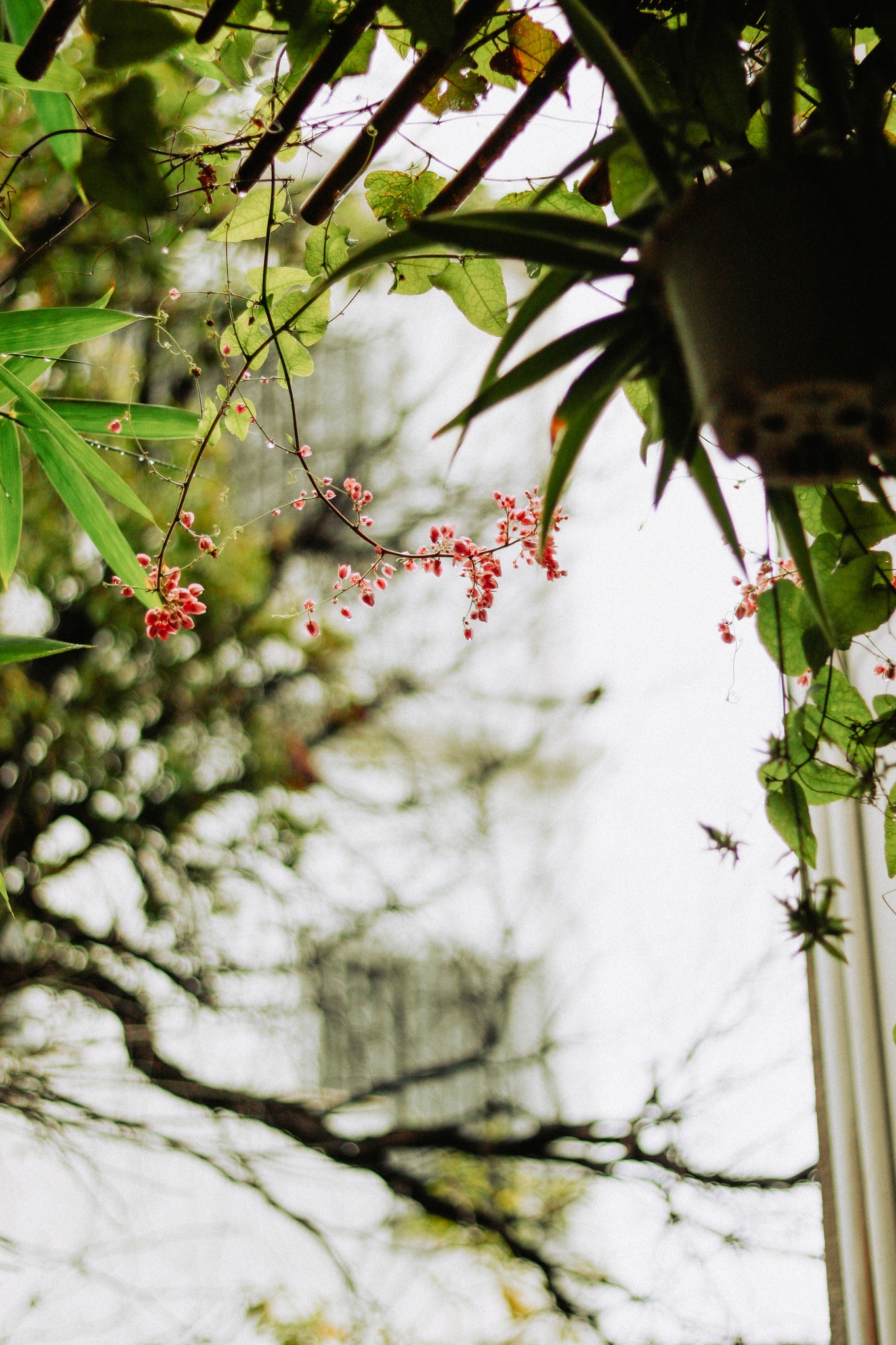 Từ phía tầng hai của quán tui trộm nhìn qua nhà kế bên, nhìn bác hàng xóm đi ra đi vào dọn dẹp gì đấy sau cơn mưa. Tui nhìn mớ cây lá xào xạc ướt nhẹp. Nghe tiếng nước chảy và gió thổi đám lá va vào nhau.