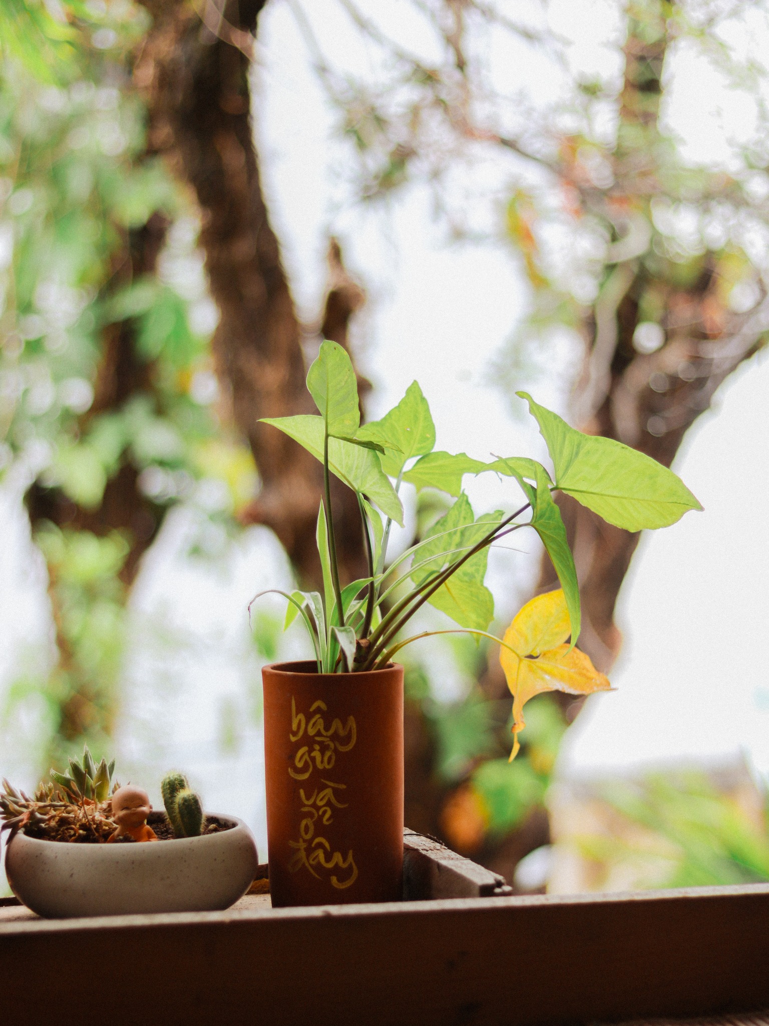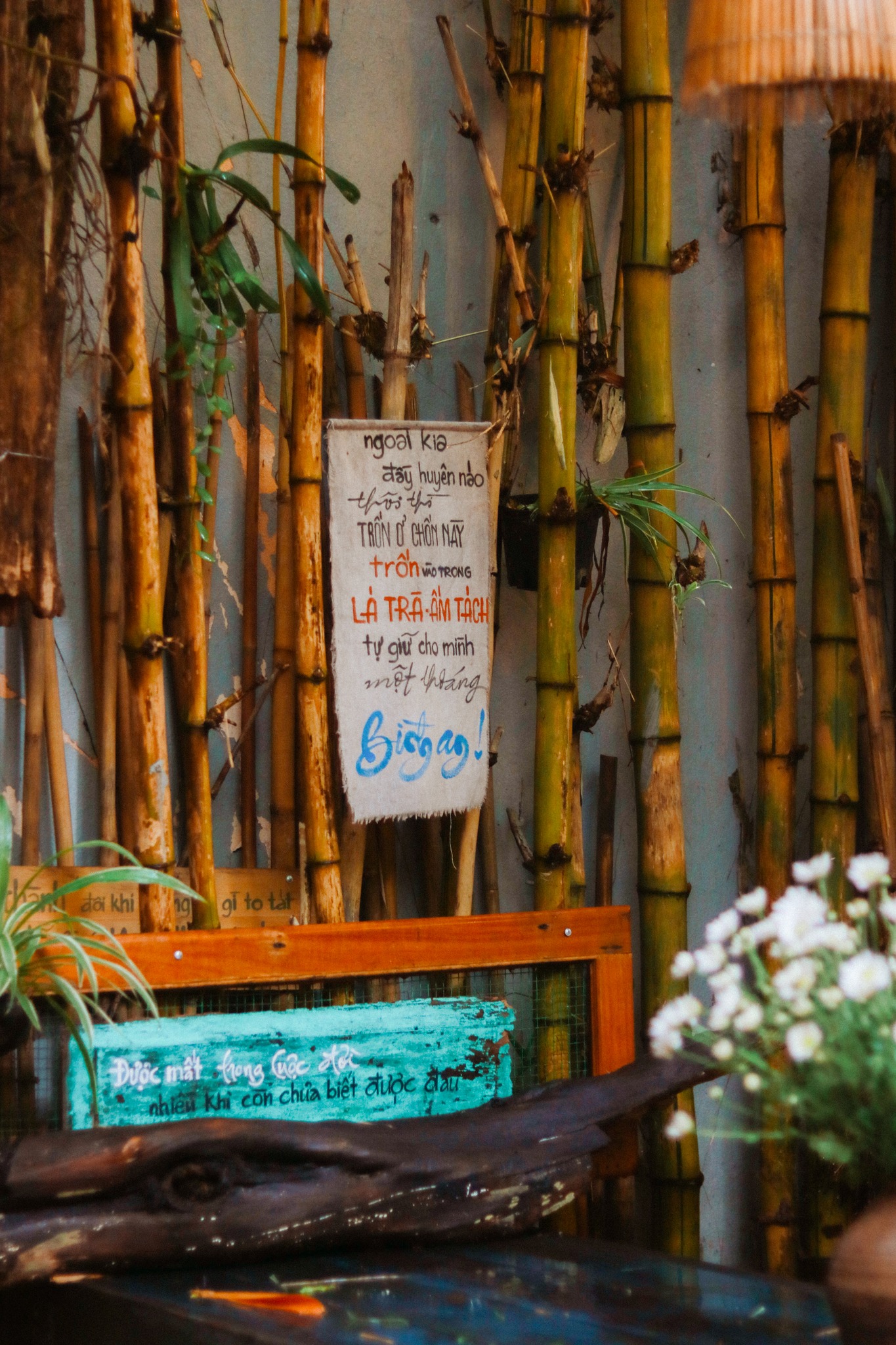 Nếu có ghé quán lần nữa tui mong gặp lại trong một ngày nắng. Nắng chen qua đám lá in mình xuống nền gạch tàu đỏ. Nắng ghé qua những khung cửa gỗ. Nắng lưu mình trong những tấm hình của tui.